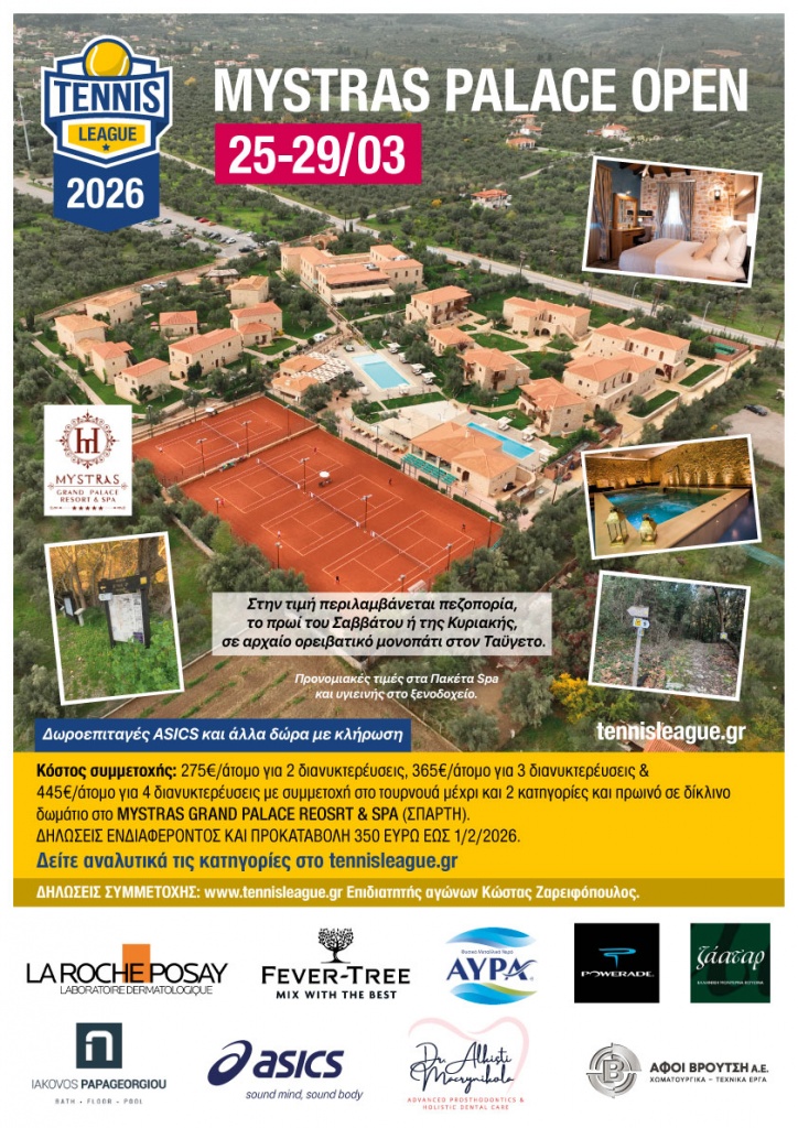 Εγγραφείτε στο ενημερωτικό μας δελτίο και μείνετε ενημερωμένοι για όλες τις διοργανώσεις της Tennis League.