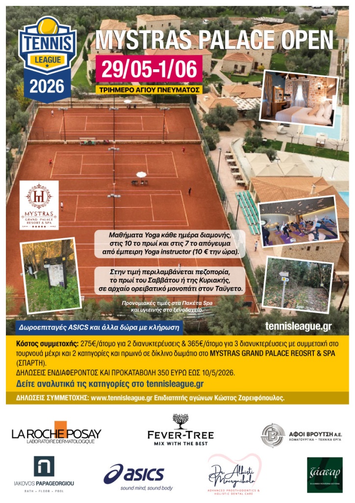 Εγγραφείτε στο ενημερωτικό μας δελτίο και μείνετε ενημερωμένοι για όλες τις διοργανώσεις της Tennis League.