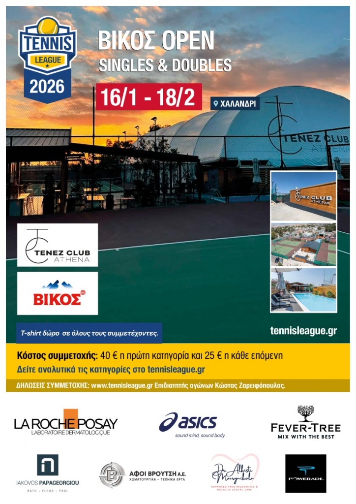 Εγγραφείτε στο ενημερωτικό μας δελτίο και μείνετε ενημερωμένοι για όλες τις διοργανώσεις της Tennis League.